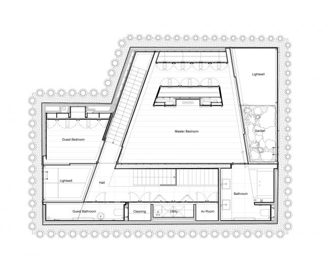 将日光引入长达8米的深度是一项挑战,尤其附近房屋的位置很紧凑,并且面朝北向。数字分析工具被用于寻找光在创造建筑物的形式和建筑组织设计方面提供了三维功能。花园中的房子建立在建筑事务所的长期关注之上,他们在白天和季节中操纵自然光线,丰富和活跃并最终定义建筑的本质。詹尼·博茨福德如此描述了这座房子。