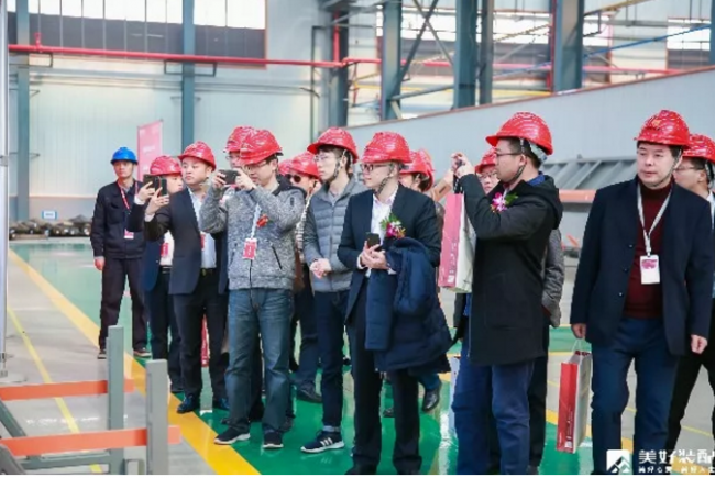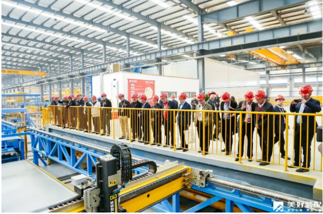 签约仪式结束后,参会代表团共同参观了美好装配江夏生产基地引进的2条欧洲最先进的EBAWE全自动叠合板生产线、1条意大利进口施奈尔自动化钢筋加工生产线、1条国内顶级的异形构件生产线,两套世界领先的LIERHERR全封闭环保混凝土生产设备。随着工作人员的讲解,代表团成员观摩生产线全过程,亲身感受智能化、数字化生产线所带来的技术变革。