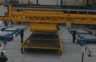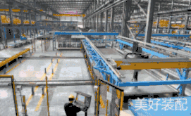 如布料机部分,国产线目前还是人工操作,根据实际需求人工控制闭合,效率较低,同时效果也较差,布料完成后,需要2个工人爬上模台进行耙均匀操作。相比而言,美好装配引进的EBAWE生产线是22个布料口,全自动化布料,布料完成后基本平整。