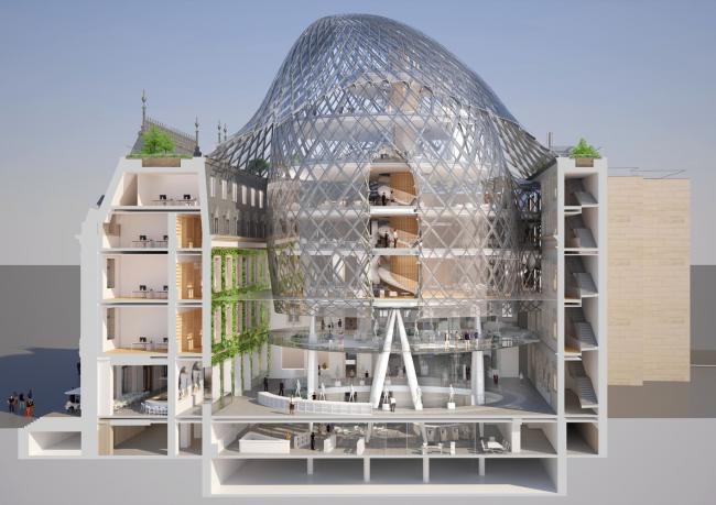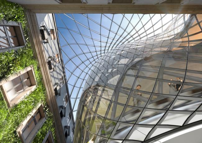 设计项目位于国家建筑师 Sosthène Weis 于1905至1910年设计的原为石质及混凝土的波斯特酒店上方,将通过在建筑中庭增建半球形“蚕茧”形体改变其原有形态。