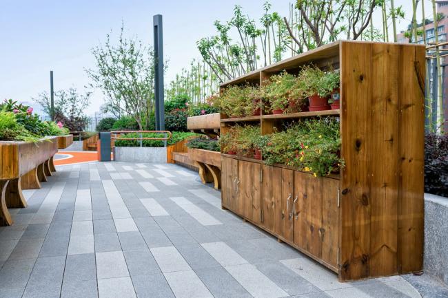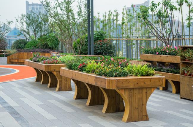 双层花池可鼓励坐轮椅的老人起身锻炼身体