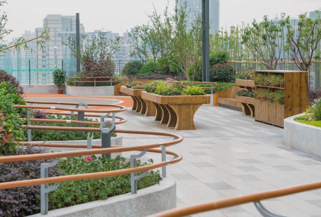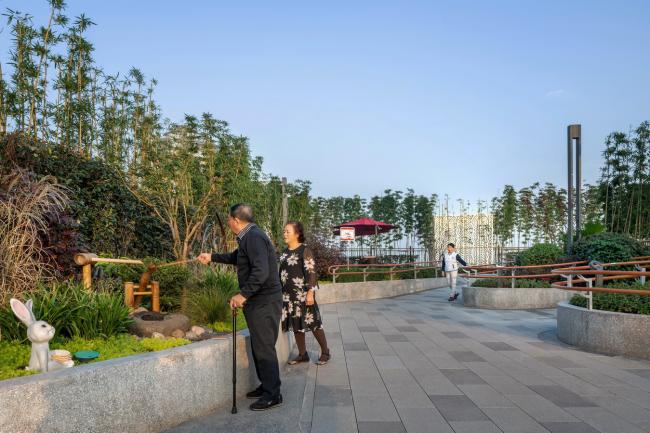 重庆龙湖的首个养老项目——龙湖新壹城颐年公寓,其屋顶康复花园的设计,是怡境设计团队践行“善意景观”的重要实践。设计团队希望,我们所身处的城市,不仅要成为年轻人为理想奋斗的场所,更要成为老年群体漫度晚年的颐居之地。一处倾注了“善意”的康复花园,若能在城市中引发多米诺效应,进而产生更多充满“善意”的适老活动空间,最终让整个城市都充满“善”与“美”,这一图景将是怡境设计团队与龙湖团队最期望的部分,也是“善意景观”理念的初衷。