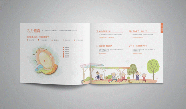 设计团队为颐年公寓的长者设计了一本康复花园的使用手册,其中生动的动漫为老人介绍了康复花园的使用方法