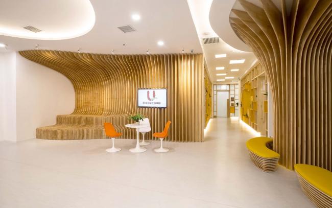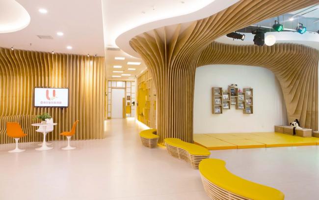 “U米 ● play”儿童教育戏剧艺术中心是一个充满乐趣和想象力的教育空间,专门供(BIM教程)儿童在表演艺术中探索和成长。 这个550平方米的室内空间是由两个不同的空间和几何形式组成,是心理学研究的衍生物,双重区域旨在鼓励不同的儿童成长与学习的行为和过程。