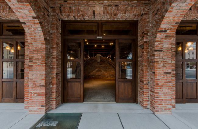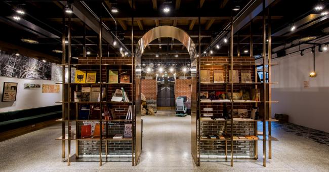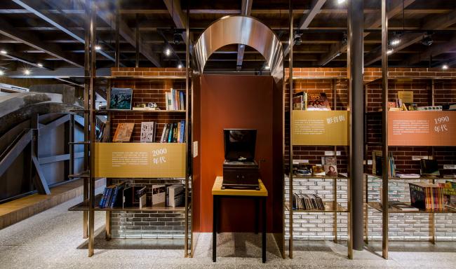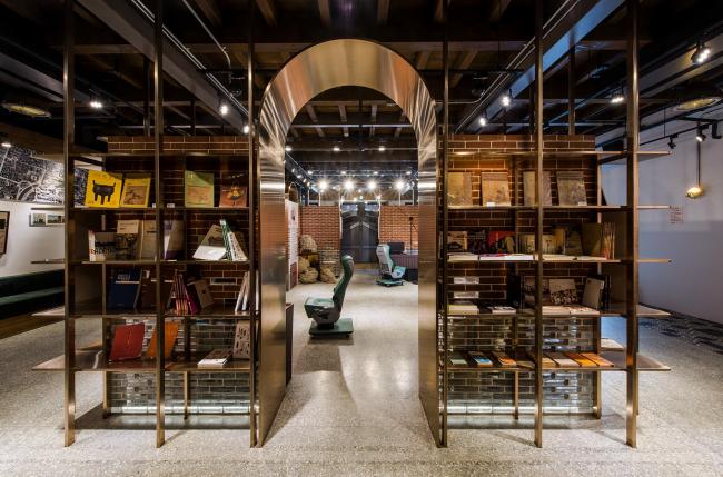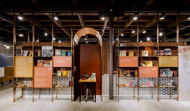 金属拱门,轻盈回应砖拱的意象。玻璃砖与清水砖围塑出记忆书城的空间,砖块的叠砌回应三井仓库的砖块纹理。磨石子地坪创造怀旧的空间,让记忆书城的空间古朴纯粹。