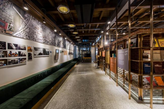 我们在一楼的中央处置入了一个「记忆小书城」,作为记忆仓库中最重要的空间,让人可以在这里获得北门周边、三井仓库甚至是整个台北发展的历史记忆。当人走进小书城里面时感受到的是一个明亮质朴的展示空间,我们利用这个纯粹的空间来凸显文物,也营造出一种尊重过去历史的氛围。
