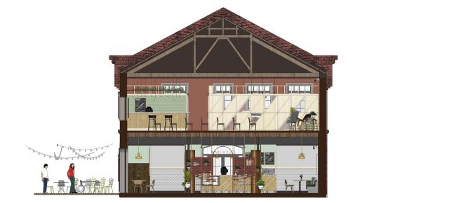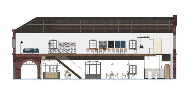 在这个建筑里,我们设定了吧台及用餐区,让后续的营运方式得以多元化,吸引更多民众来此参观(BIM学习),大家可以来此喝咖啡、看书、听演讲及参加展演活动,度过一下午的美好时光。
