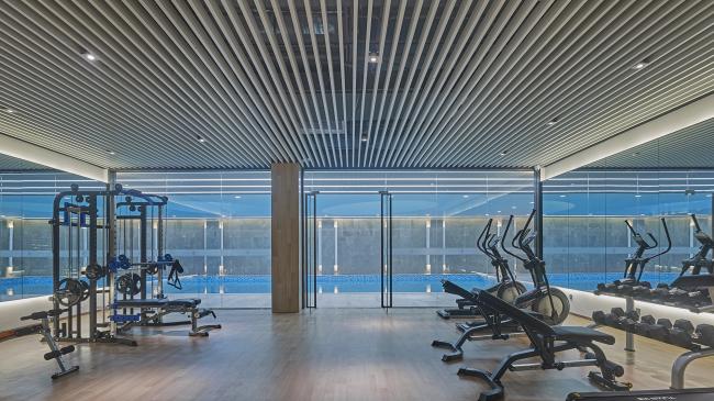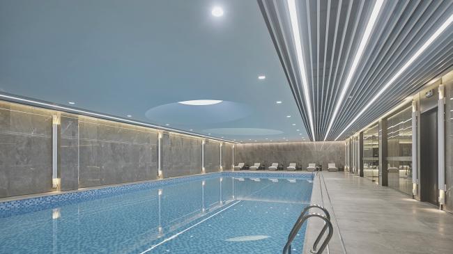 除了用于洽谈休闲的区域外,下层会所内,更是别有洞天,包涵了会客厅、健身房、私家宴、棋牌室等多重功能性空间,设计也沿用了上层会所内雅致沉稳的调性,恒温泳池的天顶更是采用了巴西利亚阳光大教堂的穹顶光影效果,神秘而悦目。从传统的厚重中脱颖而出,在当代的理性里择取禅意,德信九溪云庄生活馆将东方审美和时代步调有机(BIM建筑)结合,展现出一副与自然相融、与人类共居的理想生活画卷。
