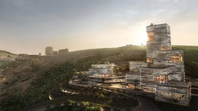 新总部的位置是设计的关键驱动因素。TBC新集会大楼位于丽思湖度假村所在的自然环境中,将工作、文化和自然融为一体,格鲁吉亚首都到当地风景和葡萄园这段绿色旅程成为重要的组成部分。还建筑群位于市中心外围的山丘上,创造了一个与历史悠久的沙提利高地村相似的新目的地。这个拥有石材和砂浆质感的建筑集群呈现出(BIM学习)传统格鲁吉亚建筑的迷人形象,其周围的景观被巨大的阳台和露台包围。整个项目的设计灵感来自当地已建成的传统房屋,它在将自然与建筑的统一中发挥着中心作用。