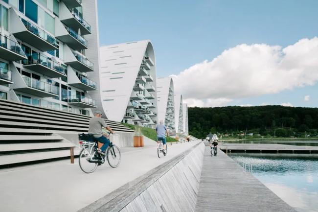 哥本哈根建筑事务所Henning Larsen Architects在丹麦瓦埃勒设计完成了一座名为“大波浪”的公寓,目前该建筑已经正式竣工完成。这座14000平方米的住宅类项目于2006年开始施工,但由于2008年的全球金融危机而被迫中断过一段时间,最终跨越了11年的建设期施工完成。