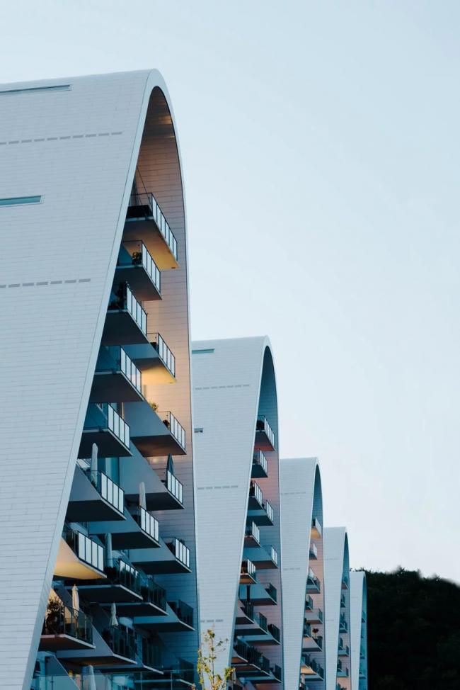 2015年重新开始建造之后,最后三座塔楼现已完工。整个项目的竣工实现了建筑师最初的愿景,并对当地老建筑和特有地形致敬。Henning Larsen Architects的合伙人兼设计总监srenllgaard解释说,“我们设计的这座大波浪形式的公寓无疑会在瓦埃勒城市天际线中留下浓墨重彩的一笔。这座建筑不但融合了属于我们自己的当代设计,还(BIM工作)具有强烈的地(BIM)方认同感。”