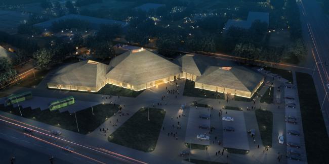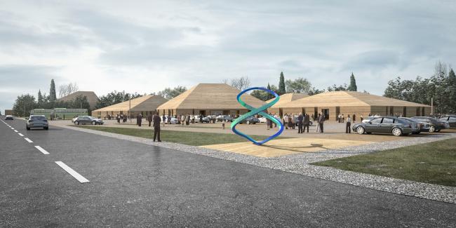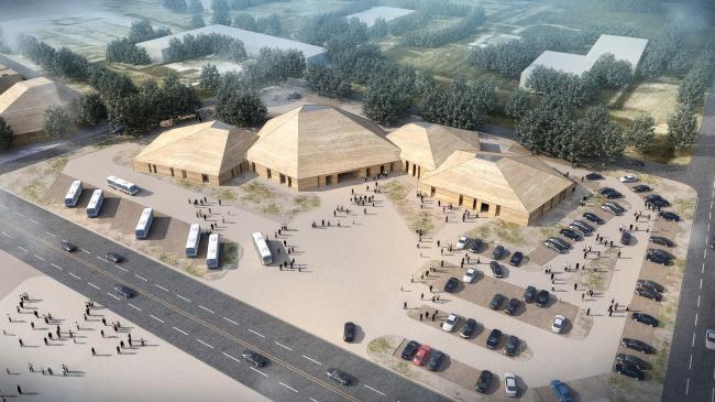该设计首先考虑它是位于沙漠中的人工建造物,所以在形态上保持和沙丘有着内在的关联,那就是相依在一起的建筑在选择建筑的色彩上和沙丘的沙色同类,屋顶的坡度也象沙丘一样缓行。这样容易吸引游客到此体验和小憩。