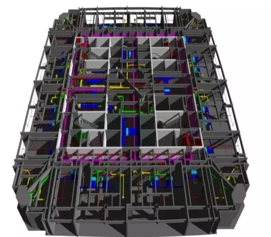 总承包在施工图图纸会审和施工图深化过程中,应用BIM模型来提高各专业之间的协同设计能力,同时加强项目设计与施工之间的协调。