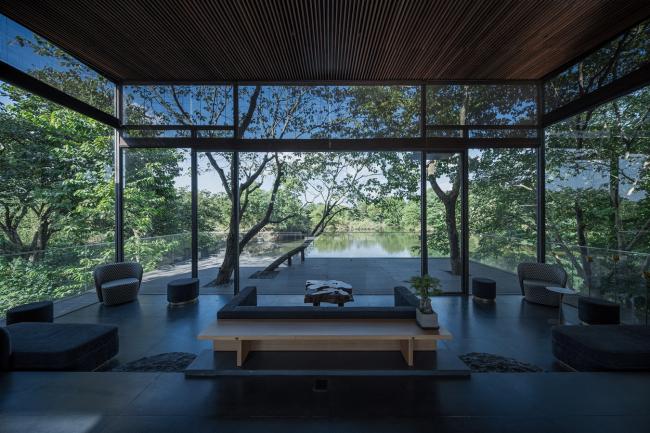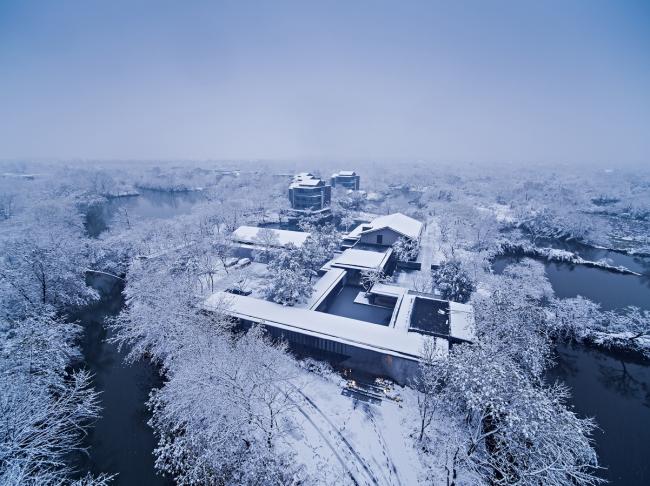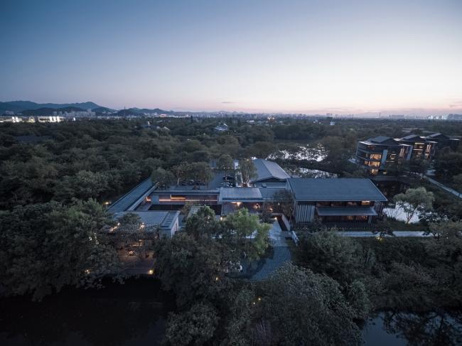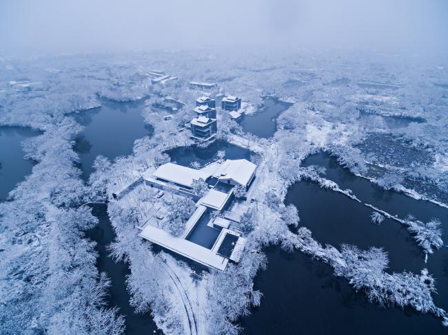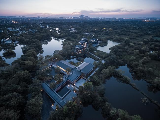 木守西溪位于西溪国家湿地公园西南角龙舌嘴入口的尽端。项目基址南望缓丘山峦,北临水网平原,依水径、通陆路,周围原生植被环绕,拥有典型的湿地生态。建筑师试图通过设计将西溪湿地“冷、静、孤、野、幽”的自然美态呈现给来访者,以建筑为媒介唤起人与原始自然的共鸣。