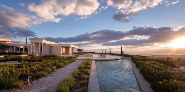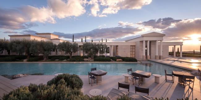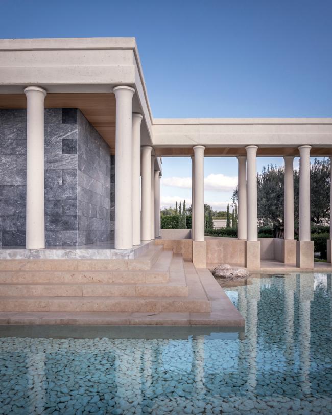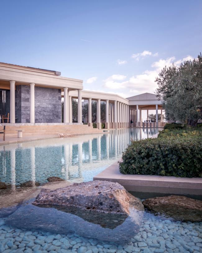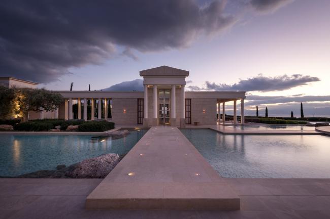 阿曼佐酒店坐落在生长了几百年的橄榄林中,从建筑中可以看到波光粼粼的宁静大海、邻近的葡萄园和令人心生敬畏的巍峨山脉。波多河丽度假小镇位于伯罗奔尼撒半岛的最南端,将其拥有的迷人海岸线景色、宜人天气和爱琴海的绚丽景色都充分利用起来。Agios Panteleimonas的“卫城”式场地总共有8公顷大小,各类宫殿式客房和普通客房分布在地块的东翼和西翼两侧,与绿色的屋顶和茂盛的植被景观完美地融为一体。