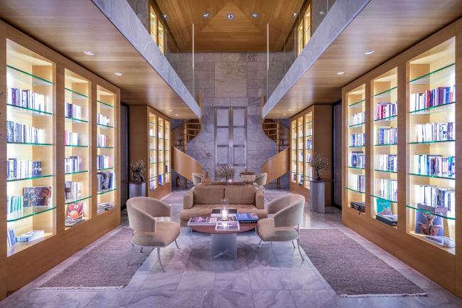 大理石和橡木木材形成的高屋顶空间