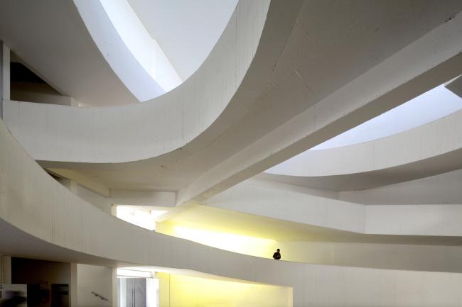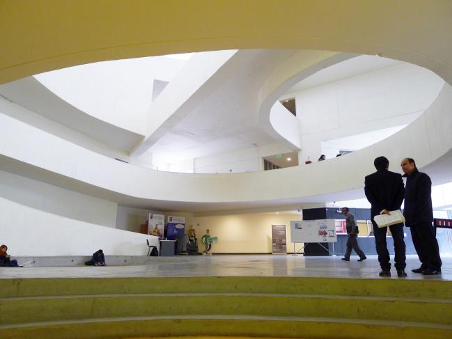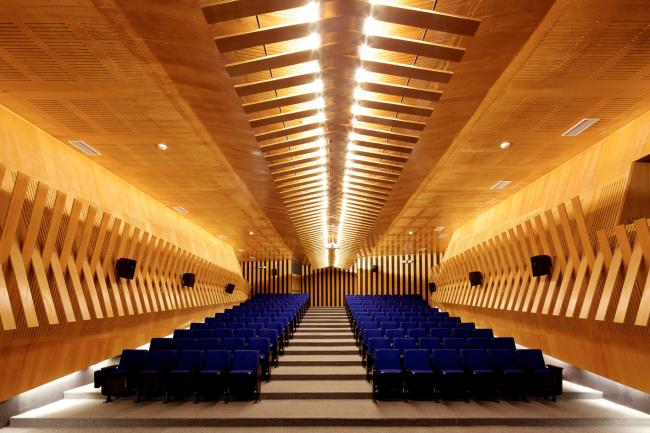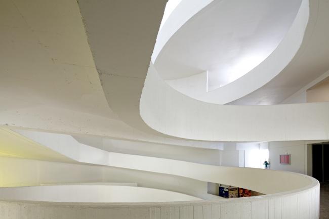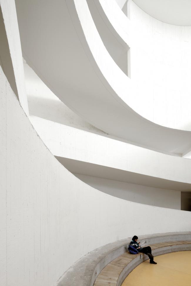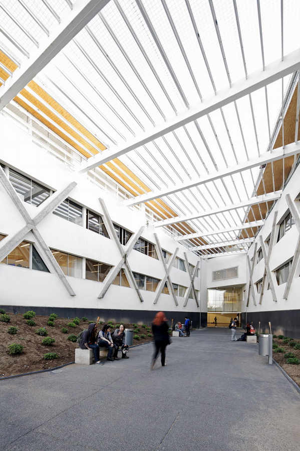 这些“手指”最终会汇集在一个宽敞且具有多变空间的4层中央大厅内,在这里由众多的斜坡和休息区围绕和交叉组成。而在宽敞的露台空间,这将成为学生和教师活动的中心区域,特别是在寒冷的冬季。这个场所承载了公共性和最常用的功能活动。空间内有各种各样的交通空间和自然采光设备。并且可以自由根据需求使用视听设备进行多功能的使用。