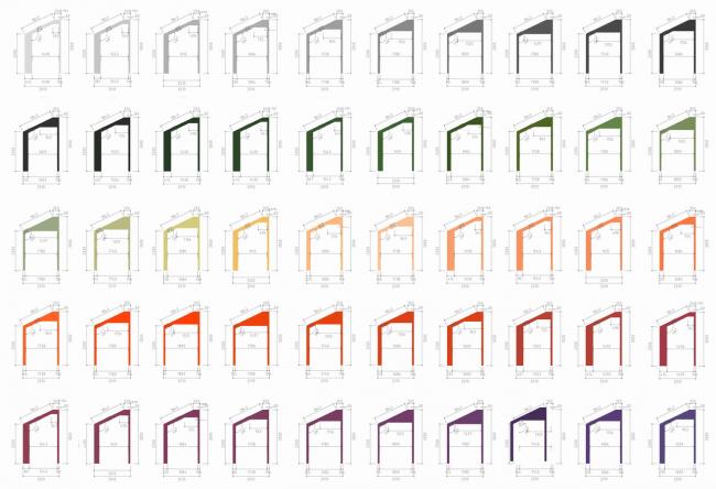 在设想泼墨走廊方案时,设计师做了几种对比方案,分别以间距,板厚为变量,同时也考虑造价和可实施性,综合比对后选择了方案三为最终实施方案。