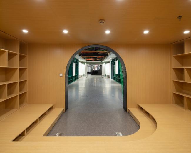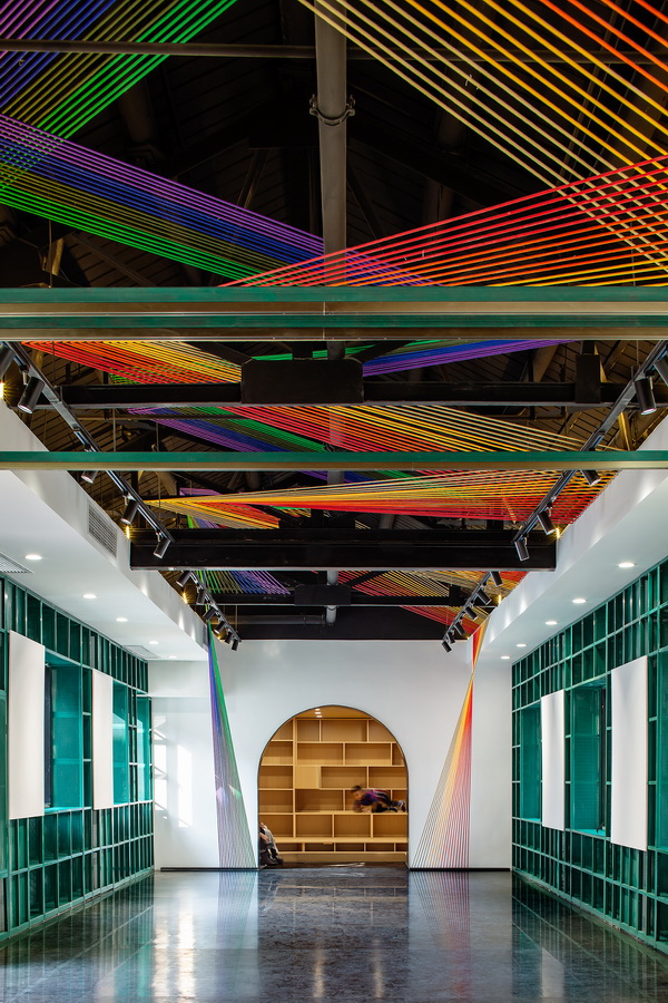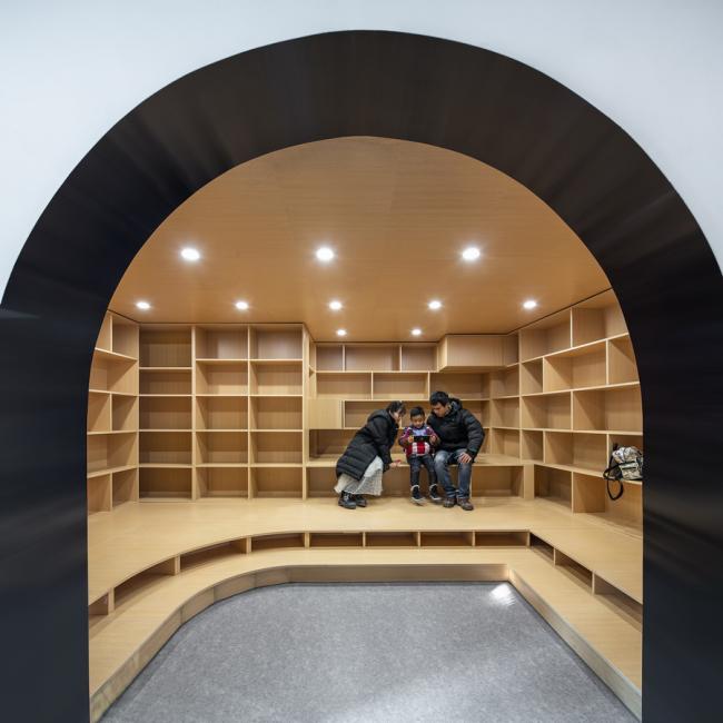 图书室是为周边儿童打造的一块公共区域,未来这里将会展出很多儿童画册、小人书,专为年轻一代打造的图书室,对于这个空间,设计师思考的是艺术要如何在大众中传播开,它应该是从小的熏陶,艺术应该走出高大上的标签,以一种接地气的姿态走入到百姓的生活中,让更多人能够接触到艺术、能够真正以欣赏的眼光来看艺术。