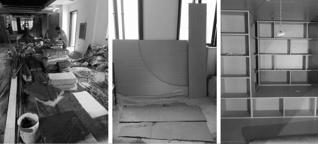 第一次去到现场的时候发现并没有想象中的那么美好,当时在做建筑外墙装饰,现场堆放了很多的建筑材料,所以并不能看到建筑全貌,勘察后的第一印象是房子很旧,结构上存在问题;室内面宽有限且宽度不统一,墙体和柱子都是非标准尺寸,这导致后期做方案的时候需要不断到现场复尺。