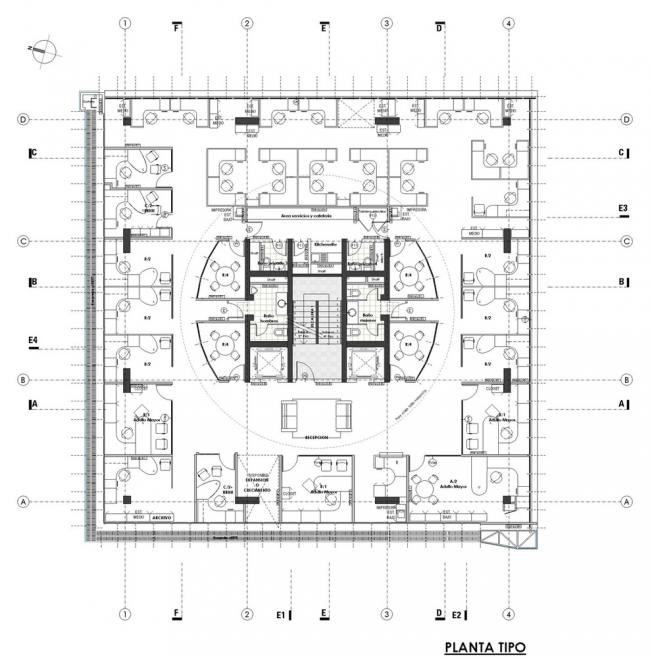 在内部空间的设计上,我们创造了一个圆形核心,并将它改变了旧有的几何形状,并提供了流畅,连续和功能的交通空间,来串联链接垂直楼层的空间组织。