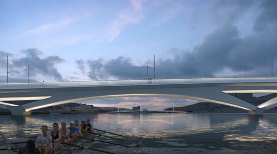 奈特建筑事务所说,它的获胜方案——“新城市桥”(New City Bridge)的设计具有“独特的不对称外观”,因为河南边的电气化铁路线需要“最大净空”,而北岸连接街道层面。