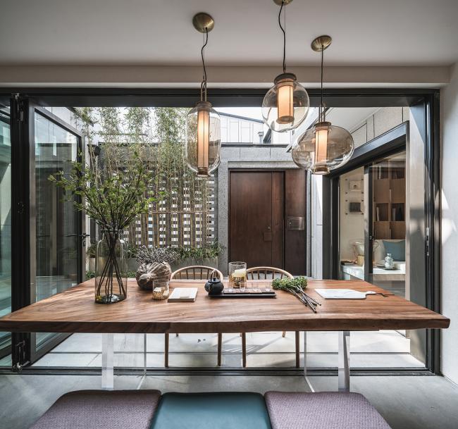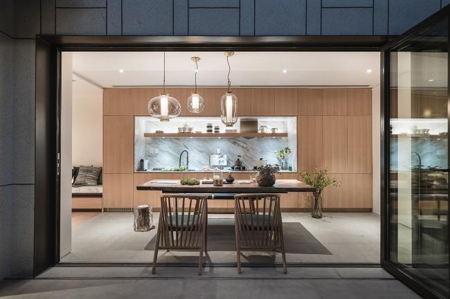可开敞的玻璃门模糊了室内与室外的界限。